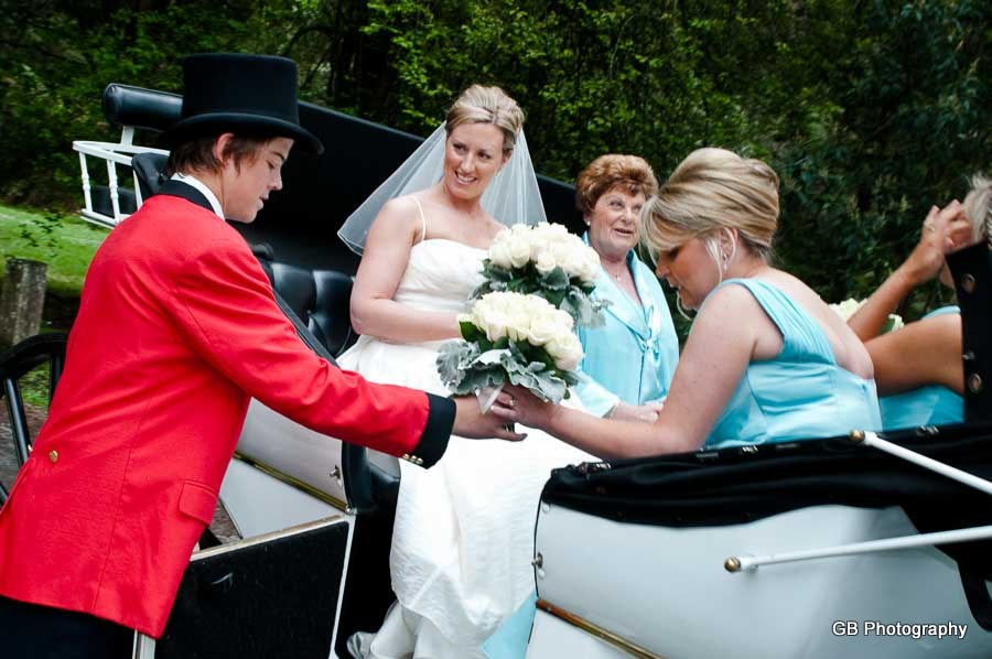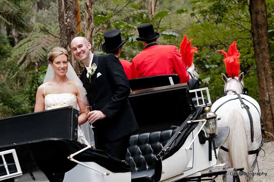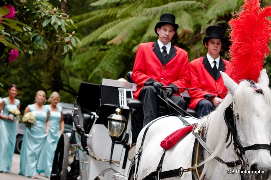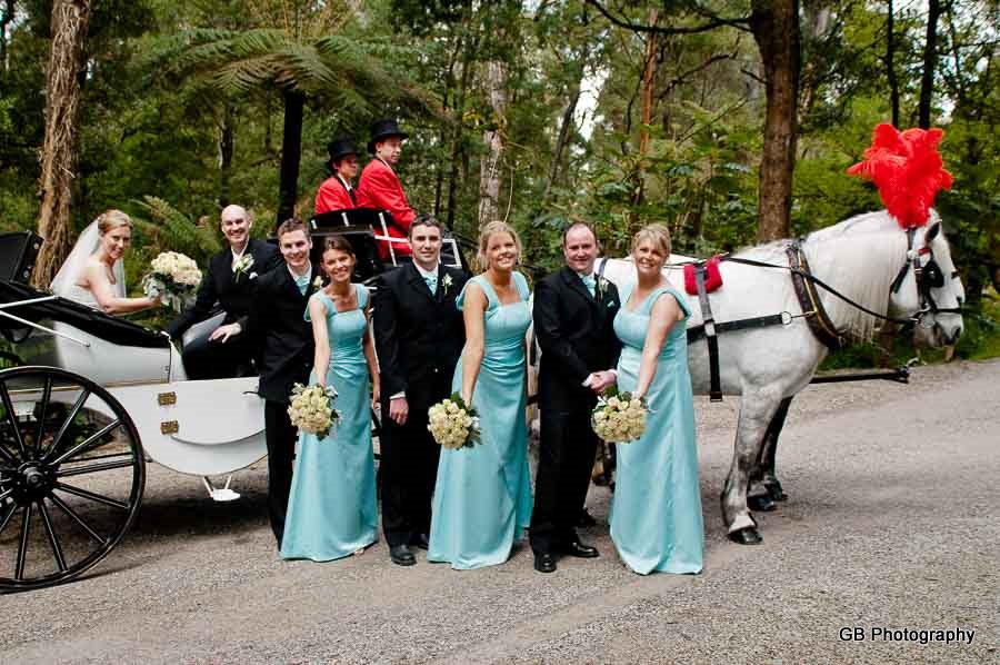 Wedding of Tonya and Matt was to me a beautiful day spent with great and amazing people. Tonya was preparing for the Wedding Ceremony with her Bridesmaids and her Mum, where we took some beautiful photos of the girls. Soon my destination became the Lyrebird Falls Reception in Kallista, and Matt was already awaiting his Bride to arrive there. Once Tonya has finally arrived in a stunningly looking horse carriage she has amazed everyone... The Ceremony was held at the same place and after that we went for a nature Wedding Photo walk around the Reception place.